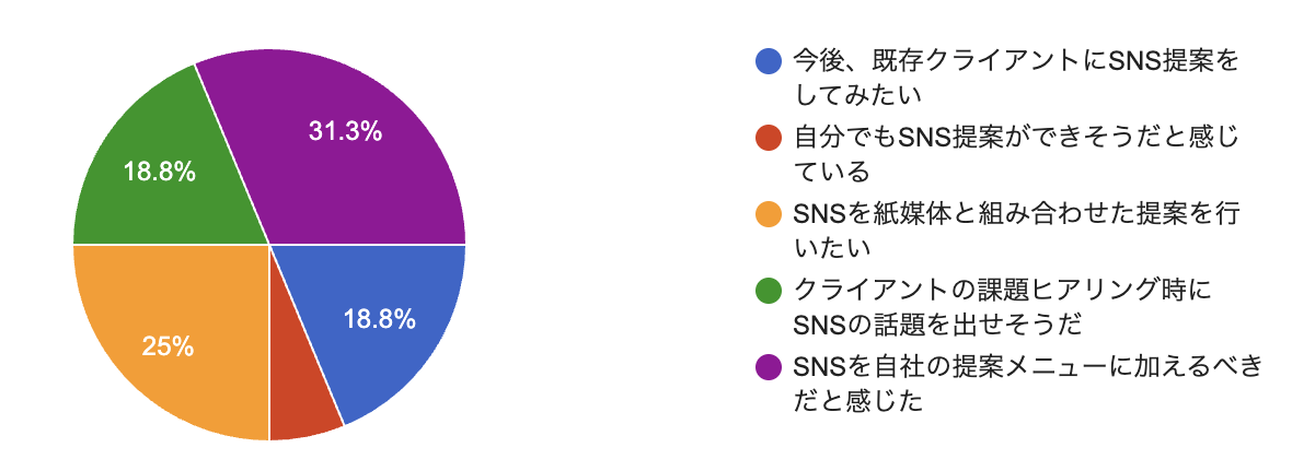 参加した営業担当者が、実際に担当しているクライアントを想定し、「どのフェーズに課題があるか」「なぜSNSが必要か」を整理するワークを実施。即座に商談で活用できる「提案メモ」を作成しました 。