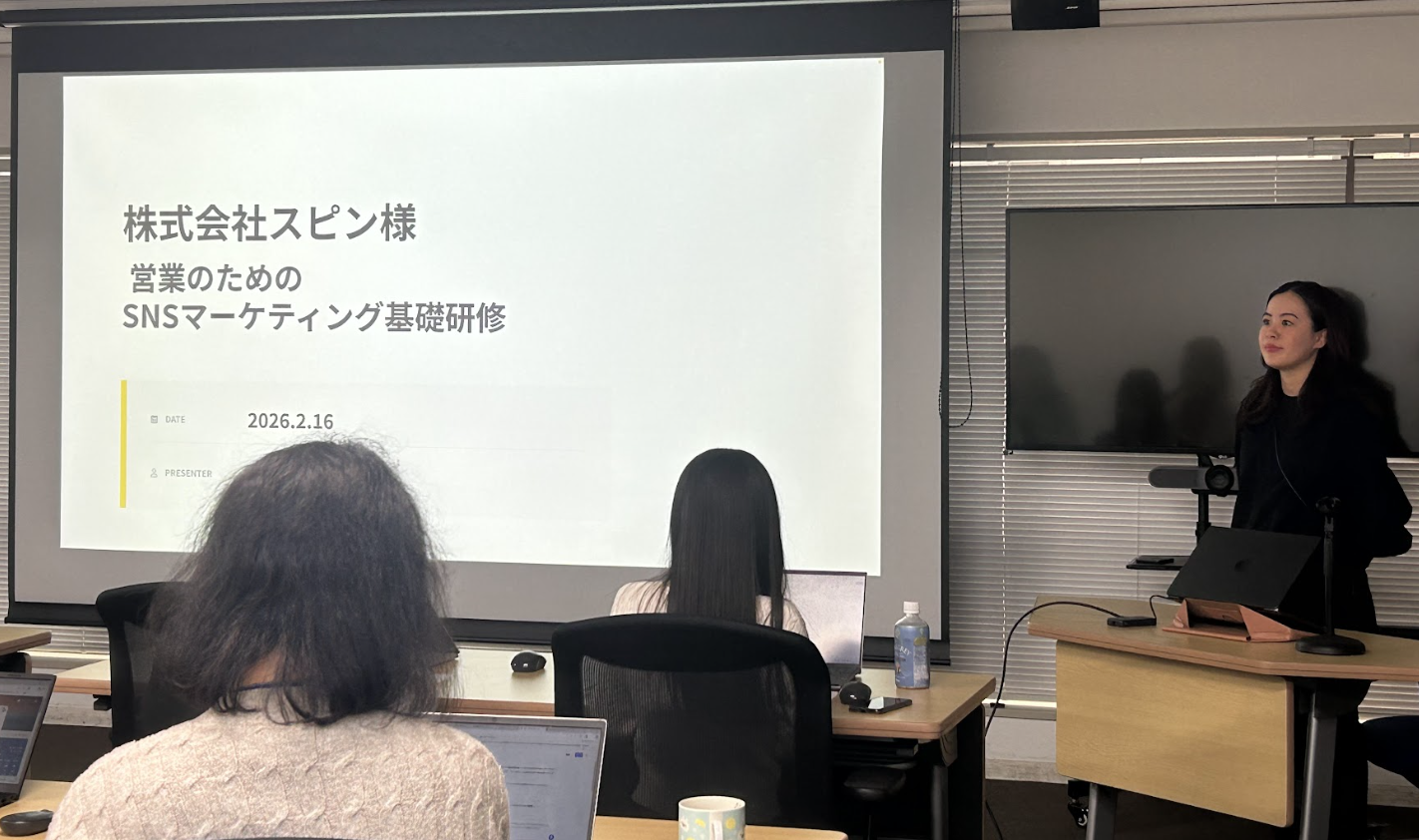 SNSマーケティング支援を展開する株式会社EmpaC(本社:東京都品川区、代表取締役:松山真衣)は、2026年2月16日(月)に大手メーカーの販促プロデュースを数多く手掛ける株式会社スピン(以下「スピン」)の本社にて、「営業のためのSNSマーケティング基礎研修」を実施しました 。